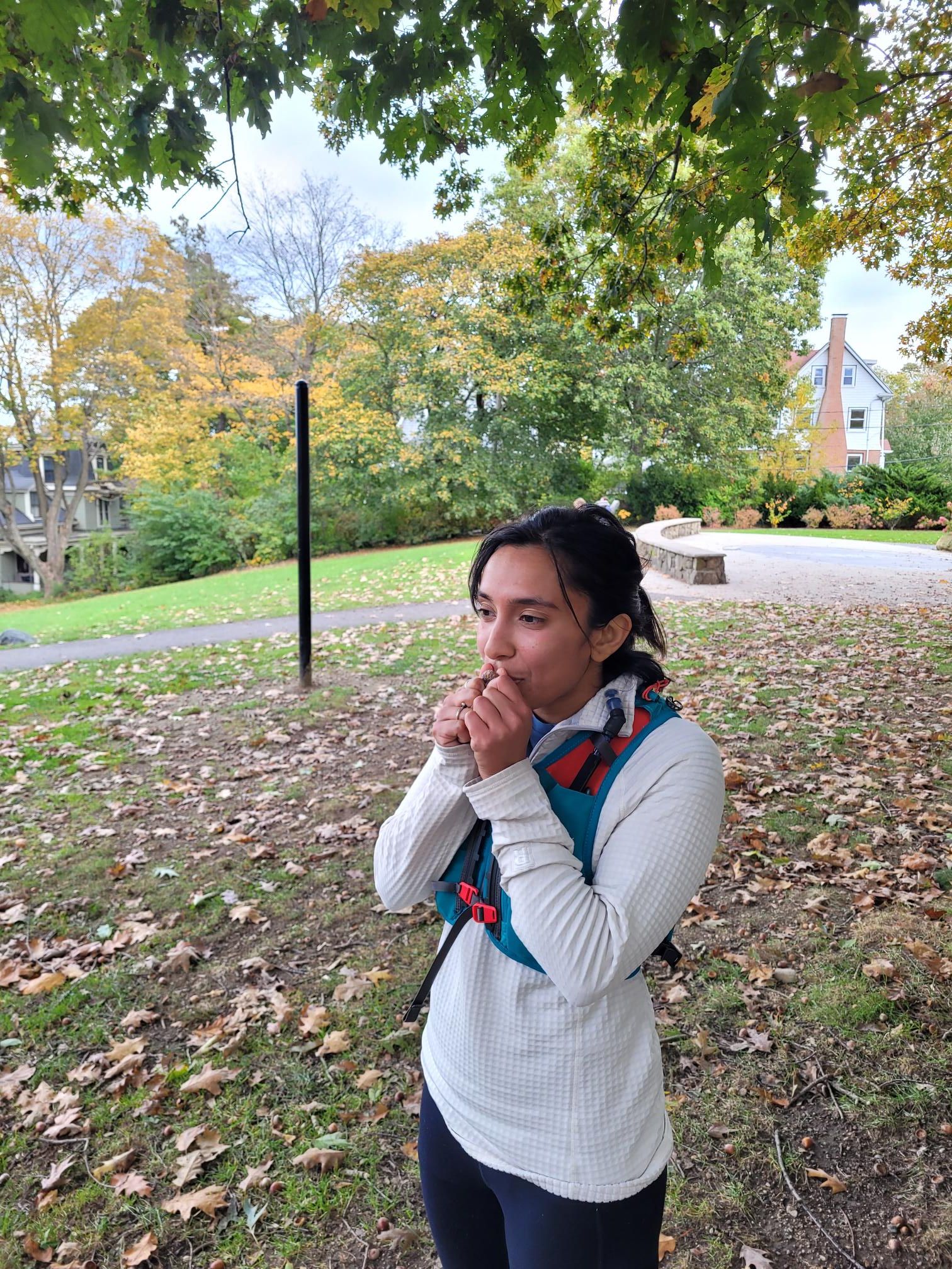 Part of a stadium and Summit Ave, too. I spent the whole time running away from this woman who was whistling at me with an acorn. She finally caught me at the top of the hill. Turns out it was just Maaya